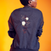 The jacket has a gorgeous embroidery of roses and thorns at the back. There is a slight flaw in the weave of the fabric, so it is offered at half the original price.