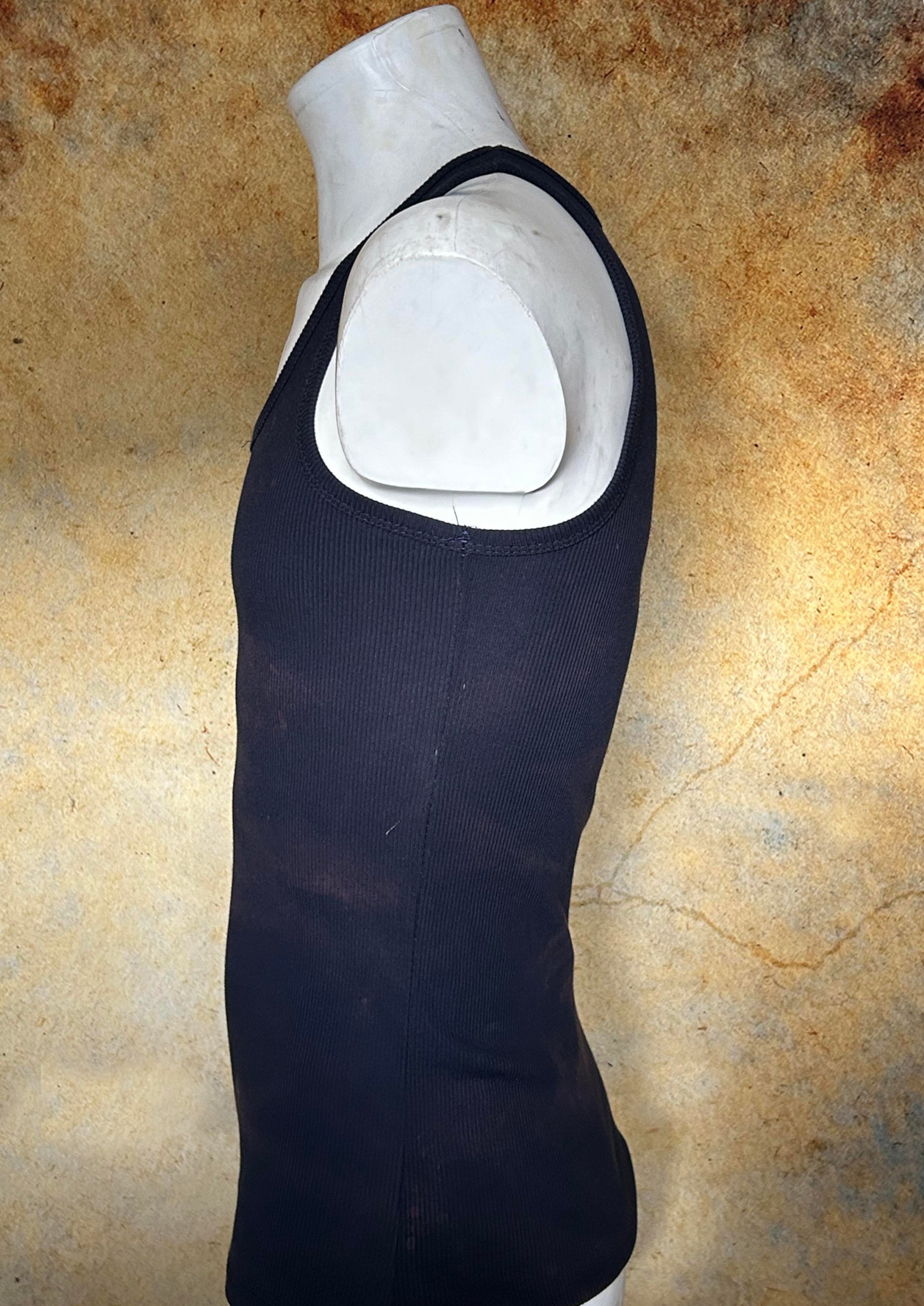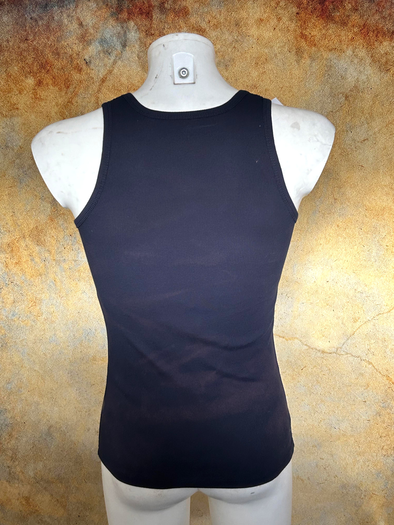 Simple, comfortable racerback style shirt that ends low on the hips.