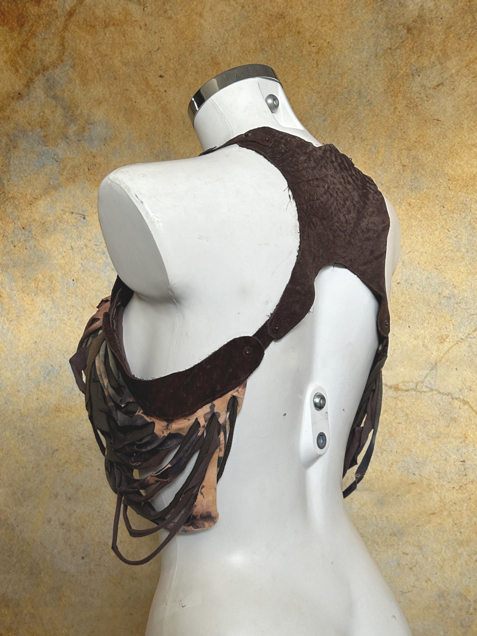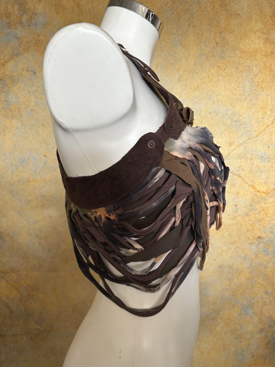 Luscious top made from soft Choclate brown suede leather and several different kinds of cotton jersey.