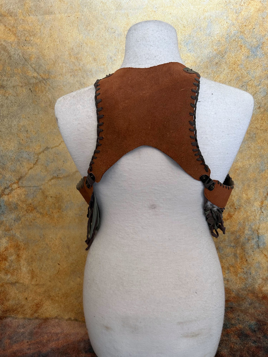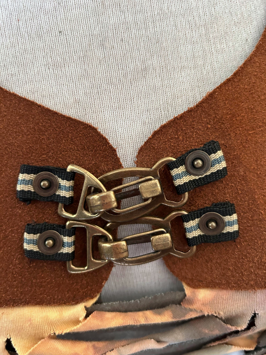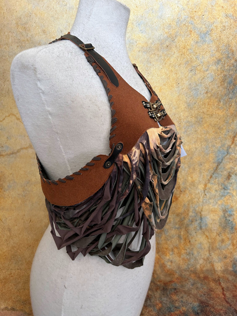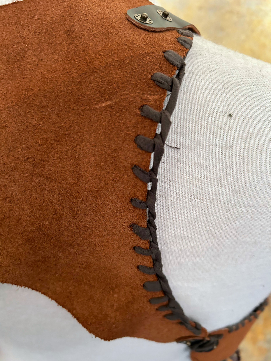Luscious top made from sturdy light brown suede leather and several different kinds of cotton jersey.